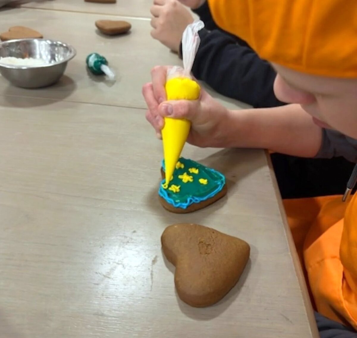 Užsiėmimo metu kiekvienas pasigamino meduolių formas, dekoravo jas spalvotais glaistais, kūrė įvairius ornamentus ir piešinius. Klasėje netrūko juoko, kūrybos ir – žinoma – gardžių kvapų, sklindančių iš virtuvės.
