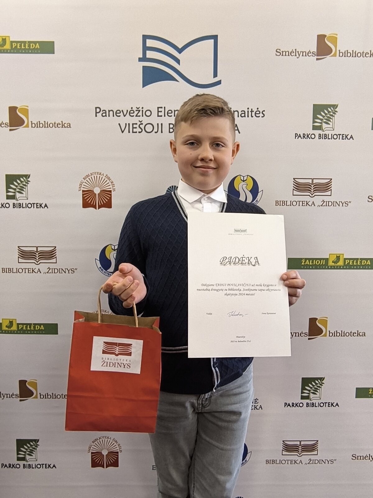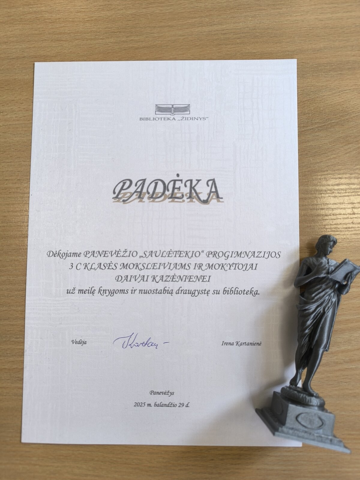 Balandžio 29 dieną 3c ir 4d klasės mokiniai dalyvavo aktyviausių 2024 metų bibliotekos lankytojų apdovanojimuose „Libris“. 3c klasė buvo apdovanota už aktyvų dalyvavimą bibliotekos organizuojamuose renginiuose, o 4d klasės mokinys Tadas P. tapo aktyviausiu bibliotekos skaitytoju. Organizuota jauki ir įkvepianti šventė: stebėjome smagų spektakliuką, vyko apdovanojimų ceremonija, o didžiausią įspūdį paliko susitikimas su rašytoja Vija Diliene. Džiaugiamės savo pasiekimais ir dėkojame bibliotekai už šiltą priėmimą! Grįžome kupini gerų emocijų, motyvacijos vėl sugrįžti į biblioteką ir kuo daugiau skaityti.
