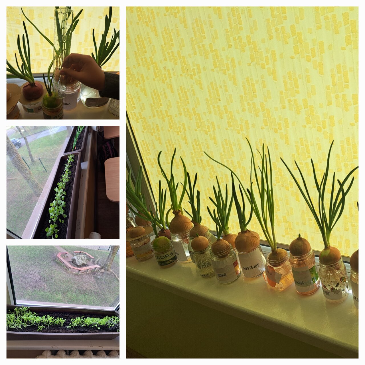 Visą balandžio mėnesį 1a ir 1b klasės mokiniai vykdė projektą „Žalioji palangė“. Jo tikslai: skatinti domėtis augalais ir stebėti asmeninę patirtį jais rūpinantis; per asmeninę vaiko patirtį formuoti suvokimą apie augalo kelią nuo sėklos, svogūnėlio iki užaugusio augalo; supažindinti su pagrindiniais augalų poreikiais ir augalų priežiūra; mokyti vaikus matuoti ir palyginti augimo pokyčius; gilinti supratimą apie gamtos svarbą ir ekologiją bei įgytas žinias pritaikyti praktikoje; lavinti pažinimo, komunikabilumo, kūrybiškumo, tiriamąsias, skaitmeninio raštingumo bei karjeros kompetencijas; skatinti bendravimą ir bendradarbiavimą, atliekant patyriminę veiklą.