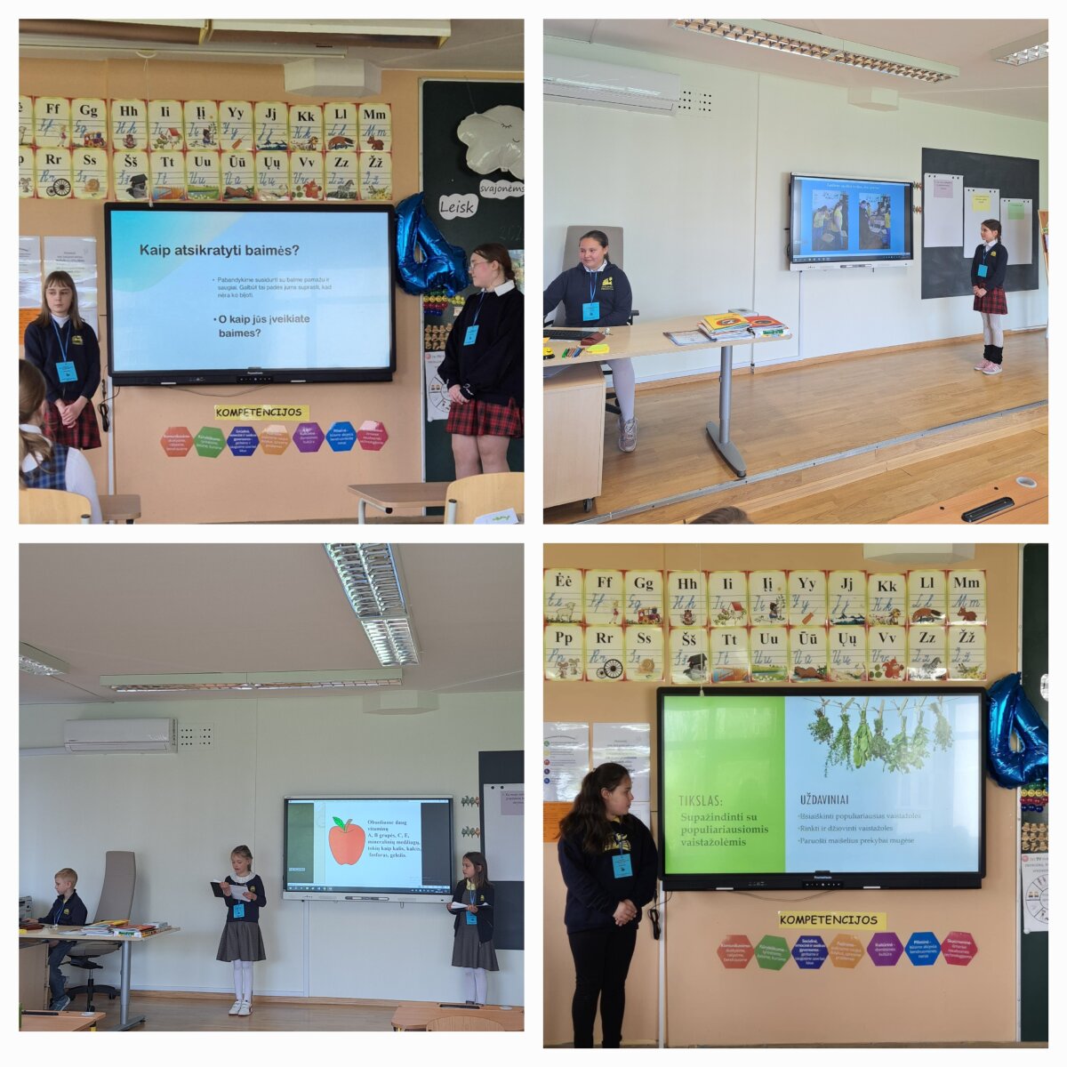 Balandžio 30 dieną 1b klasės mokiniai: Ugnė, Lukas, Danielė, 4b klasės – Jogailė, Vanesa, Elzė, Mėta, 4c klasės – Lėja, Melita ir 4d klasės mokinė Vakarė skaitė pranešimus respublikinėje 1-4 klasių mokinių konferencijoje „Sveikatos ABC“, kuri vyko Panevėžio „Šaltinio“ progimnazijoje. Mokiniams padėjo pasiruošti mokytojos Diana, Jūratė, Violeta, Ingrida.