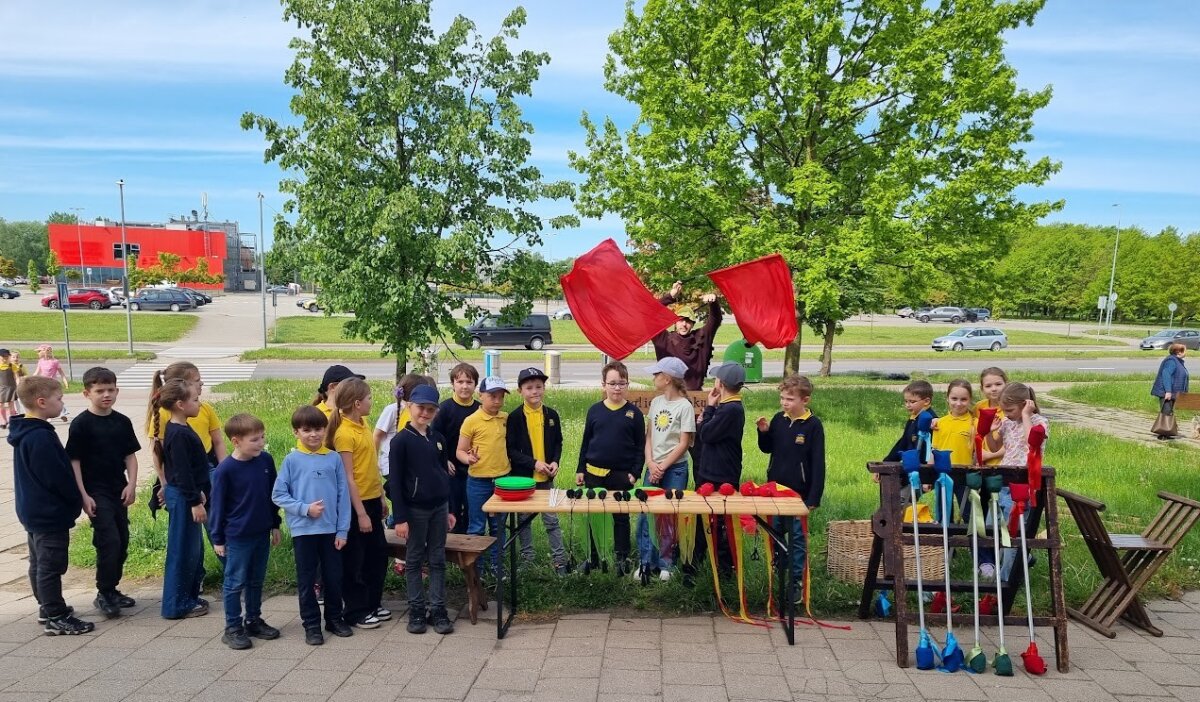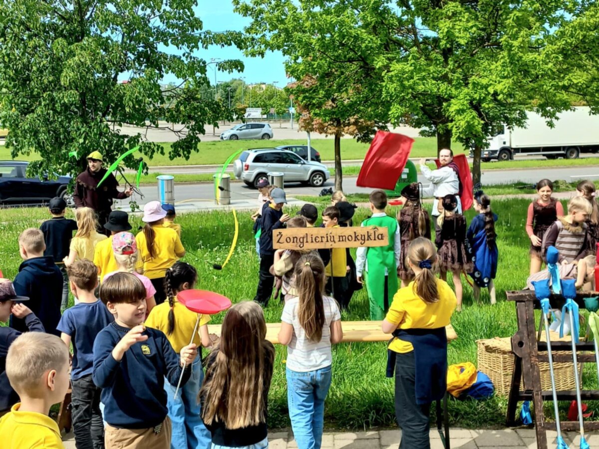Gegužės 27 dieną Panevėžio Elenos Mezginaitės viešojoje bibliotekoje „Židinys“ vyko jauki ir džiugi bendruomenės šventė „Po vienu stogu“, kurioje dalyvavo ir mūsų 1c bei 2c klasės mokiniai. Vaikai su džiaugsmu klausėsi dainų, stebėjo pasirodymus ir patys aktyviai įsitraukė į veiklas. Daugiausiai šurmulio ir ovacijų sulaukė „Viduramžių kiemo“ žonglieriai ir kojūkininkai – gyvosios istorijos meistrai, kurie ne tik linksmino, bet ir mokė senovinių triukų, praskaidrindami dieną visiems šventės dalyviams. Dėkojame visiems organizatoriams už šiltą šventę! Mūsų mažieji išsinešė daug džiaugsmo, kūrybos kibirkštėlių ir šypsenų.