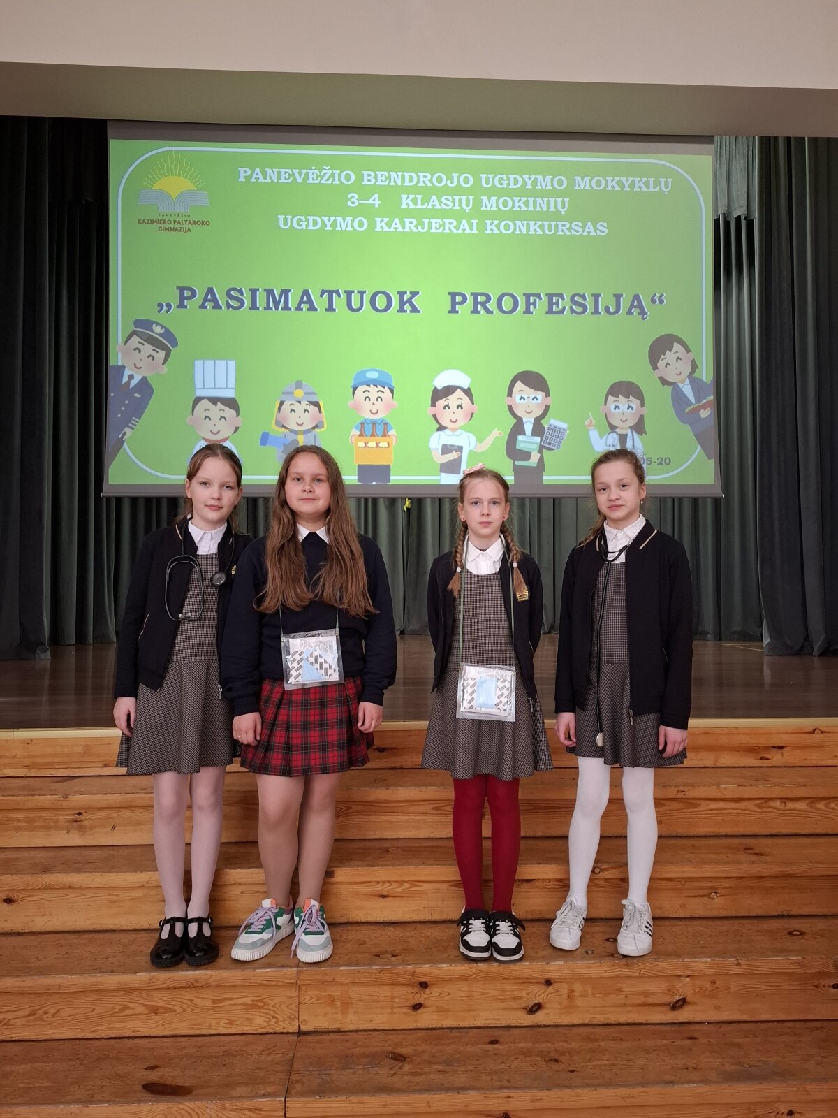 Gegužės 20 dieną 3a ir 3c klasės mokinės dalyvavo ugdymo karjerai skirtame konkurse „Pasimatuok profesiją“. Atlikusios konkurso užduotis, mergaitės turėjo galimybę susipažinti su policijos pareigūno profesija ir jų naudojamais darbo įrankiais. Mergaitės gerai praleido popietę, įgijo žinių ir patirties, buvo apdovanotos padėkomis ir valgomais prizais.