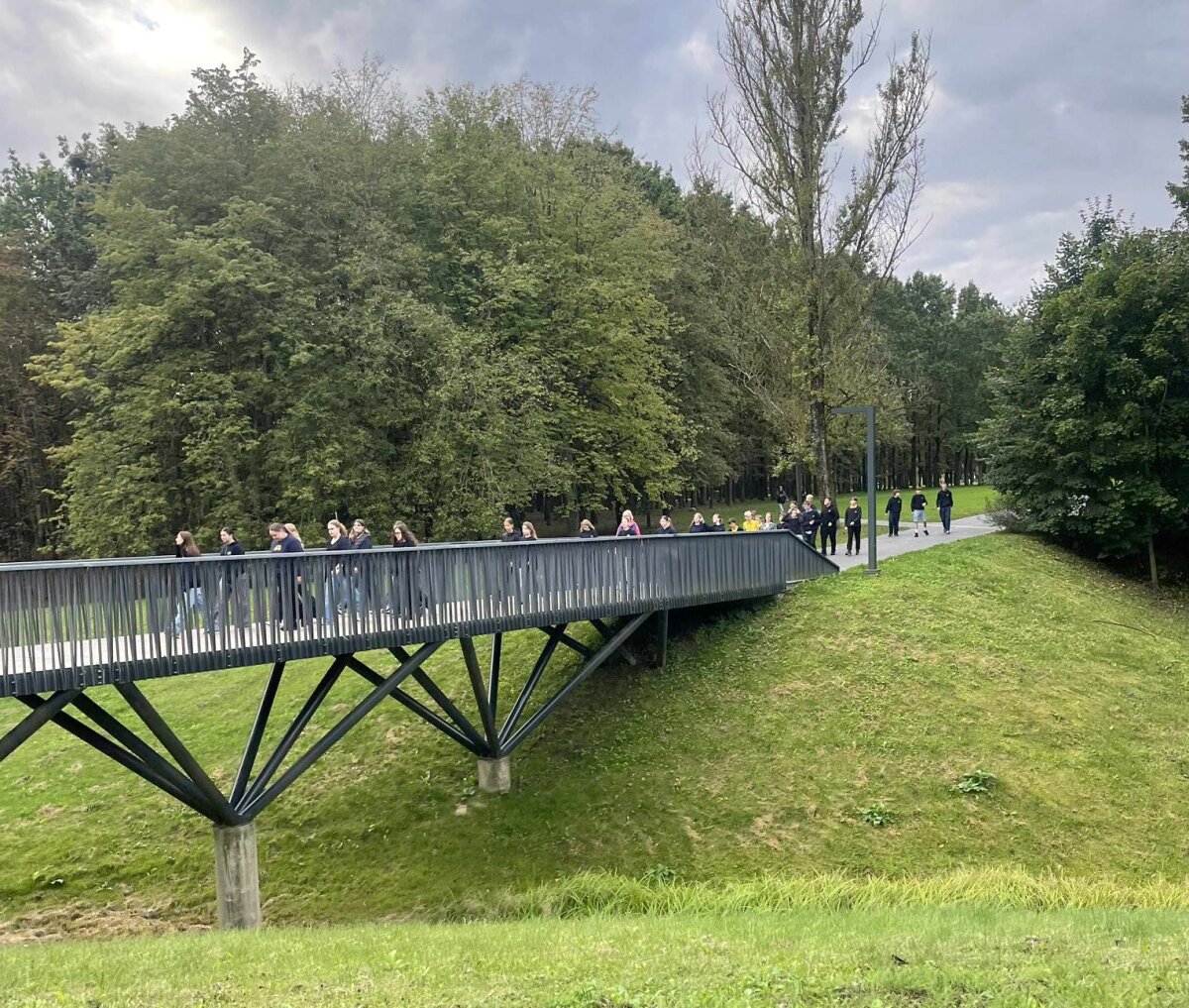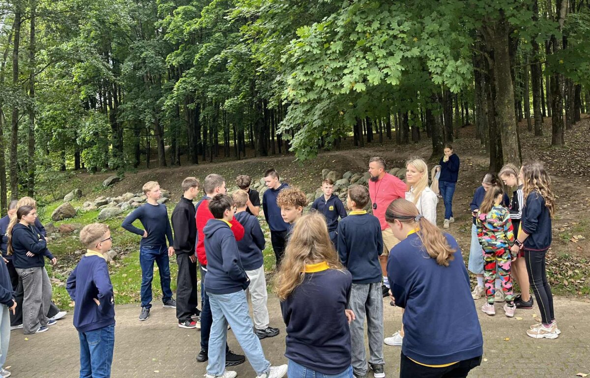 Mokiniai žingsniuodami klausėsi garsų, dalyvavo pokalbyje apie kompozitorių ir simboliškame sustojime prie čiurlenančio šaltinio parke prisiminė simfoninę poemą MIŠKE.
