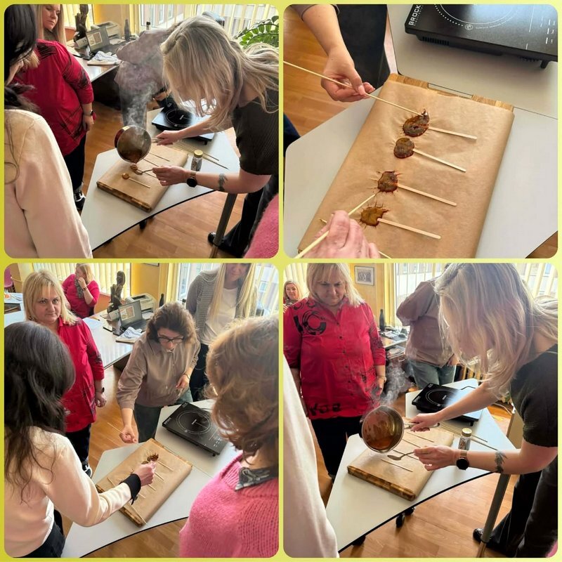 Svečiai išklausę ir stebėję pristatymą apie gintarą, jo ypatumus bei savybes, prisiminę legendą apie dievo Perkūno sutrupintus prabangius deivės Jūratės rūmus, komandose atliko teksto suvokimo, atidumo, dėmesio koncentracijos ir Kahoot platformos užduotis, stebėjo, kaip pagaminti saldų, gardų, valgomą „gintarą“. Visų nuostabai jį ir paragavo.