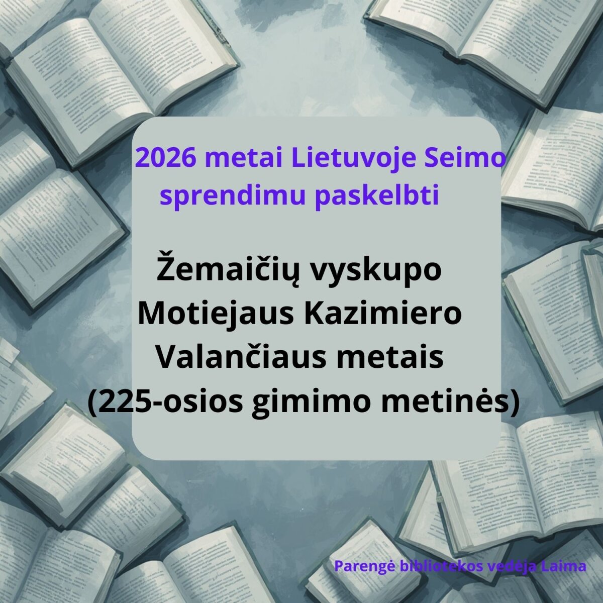 Lietuvos Respublikos Seimo nutarimu 2026-ieji paskelbti Motiejaus Kazimiero Valančiaus metais.