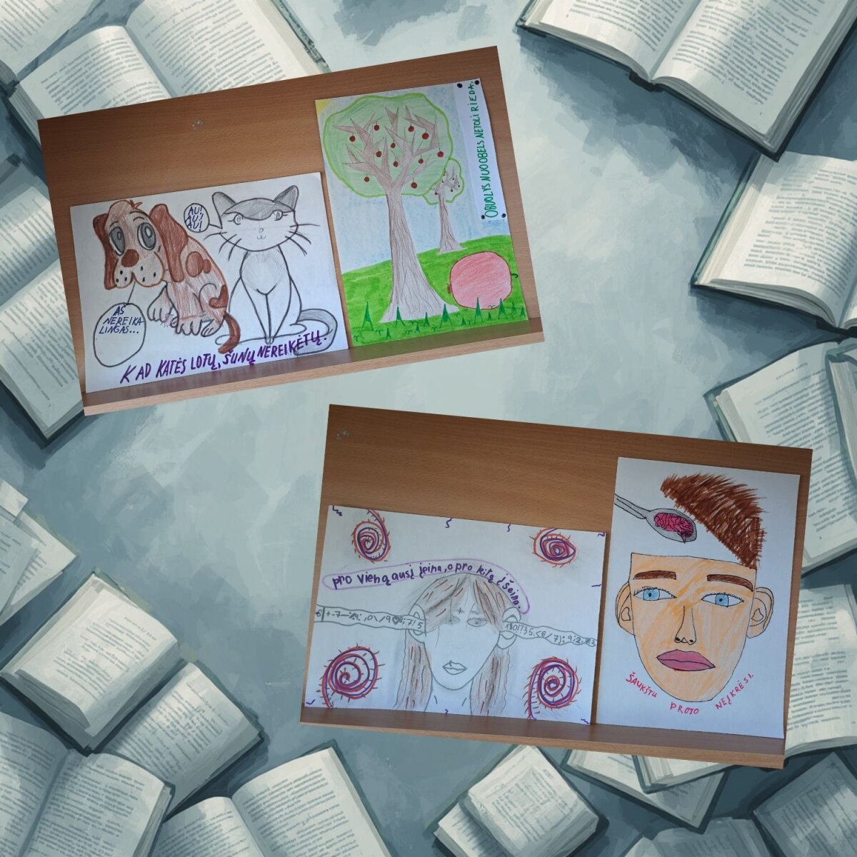 Kaip jiems sekėsi, galite pamatyti parodoje mokyklos bibliotekoje. Kviečiame užsukti ir pasigrožėti mokinių darbais – kiekvienas jų atskleidžia vaikų kūrybiškumą, vaizduotę ir meilę lietuvių kalbai.