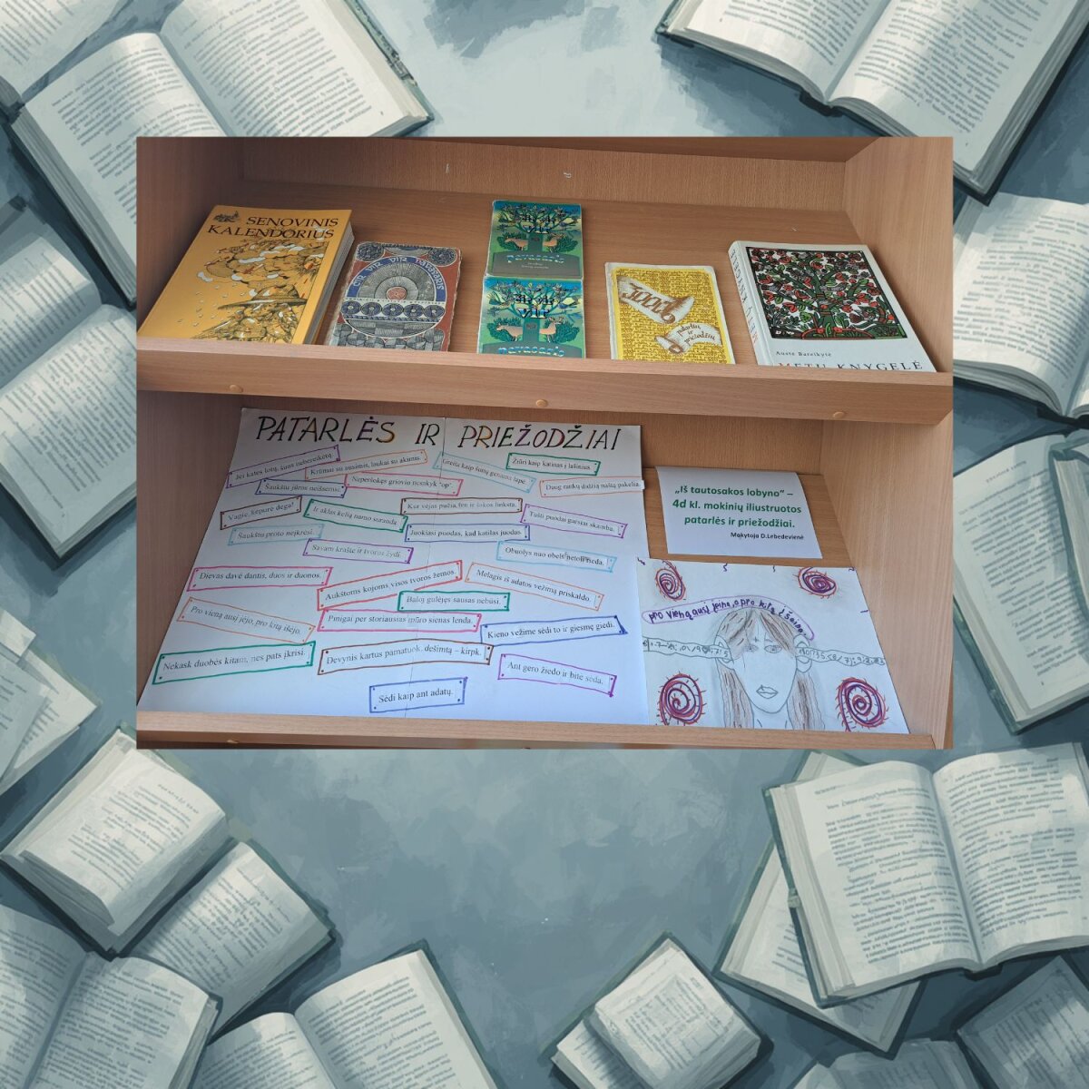 4d klasės mokiniai, dalyvaudami projekte „Iš tautosakos lobyno“, skirtame Lietuvių kalbos dienoms paminėti, rinko ir iliustravo patarles bei priežodžius.
