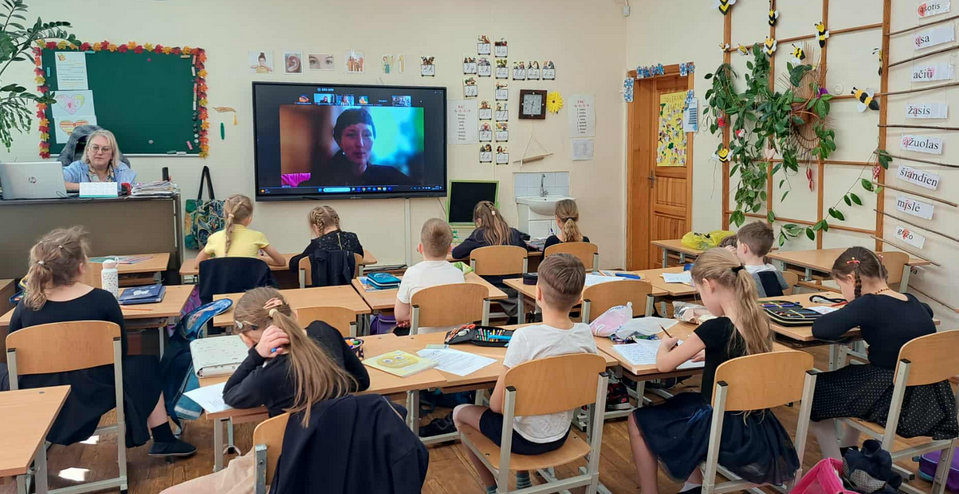 1b klasės mokiniai turėjo unikalią galimybę išgirsti, kaip gimsta idėjos knygoms, tiesiogiai iš 2025 metų vertingiausios vaikų knygos autorės lūpų.