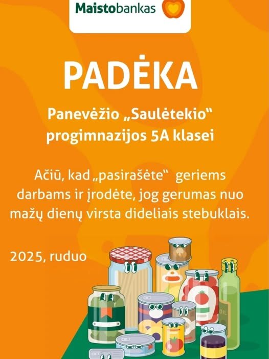 5a klasės mokiniai dalyvavo tradicinėje „Maisto banko“ akcijoje. Visą savaitę jie nešė į mokyklą ilgo galiojimo maisto produktus, norėdami prisidėti prie pagalbos žmonėms, kuriems šiuo metu sunkiau.