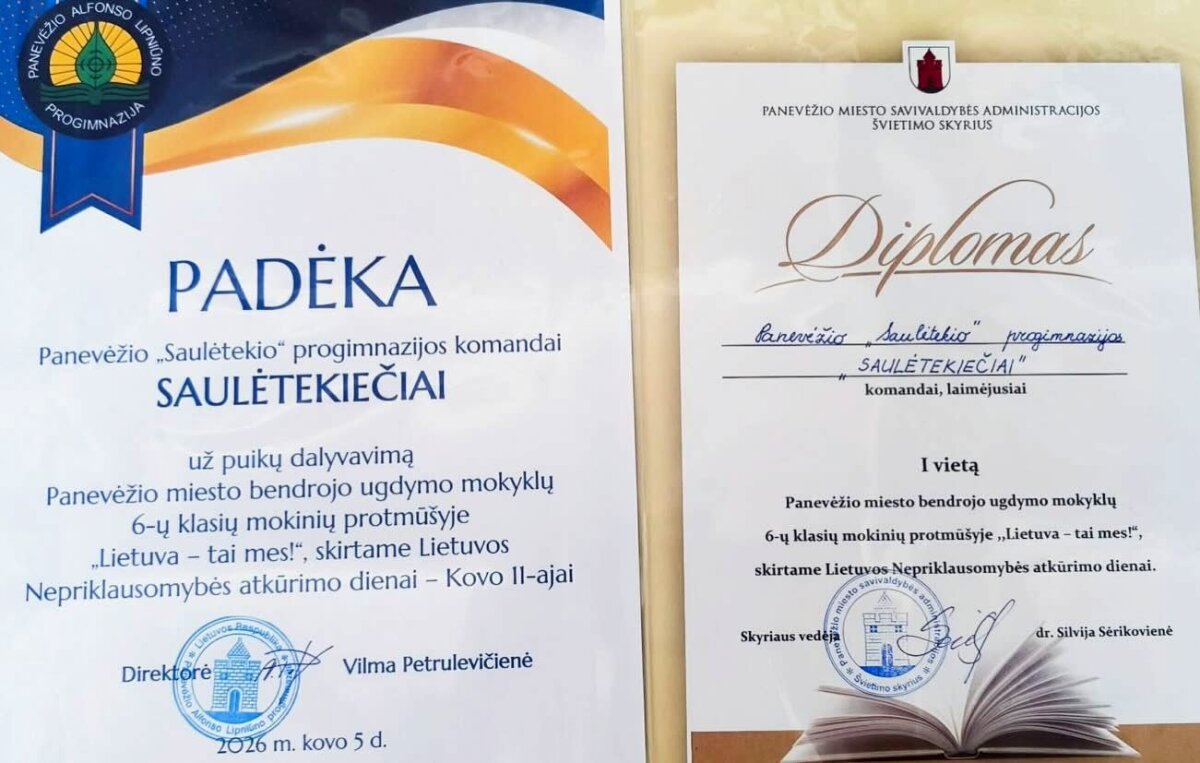 Šis laimėjimas – puikus komandinio darbo ir pastangų rezultatas. Džiaugiamės pergale ir garbingai atstovauta mokyklai.