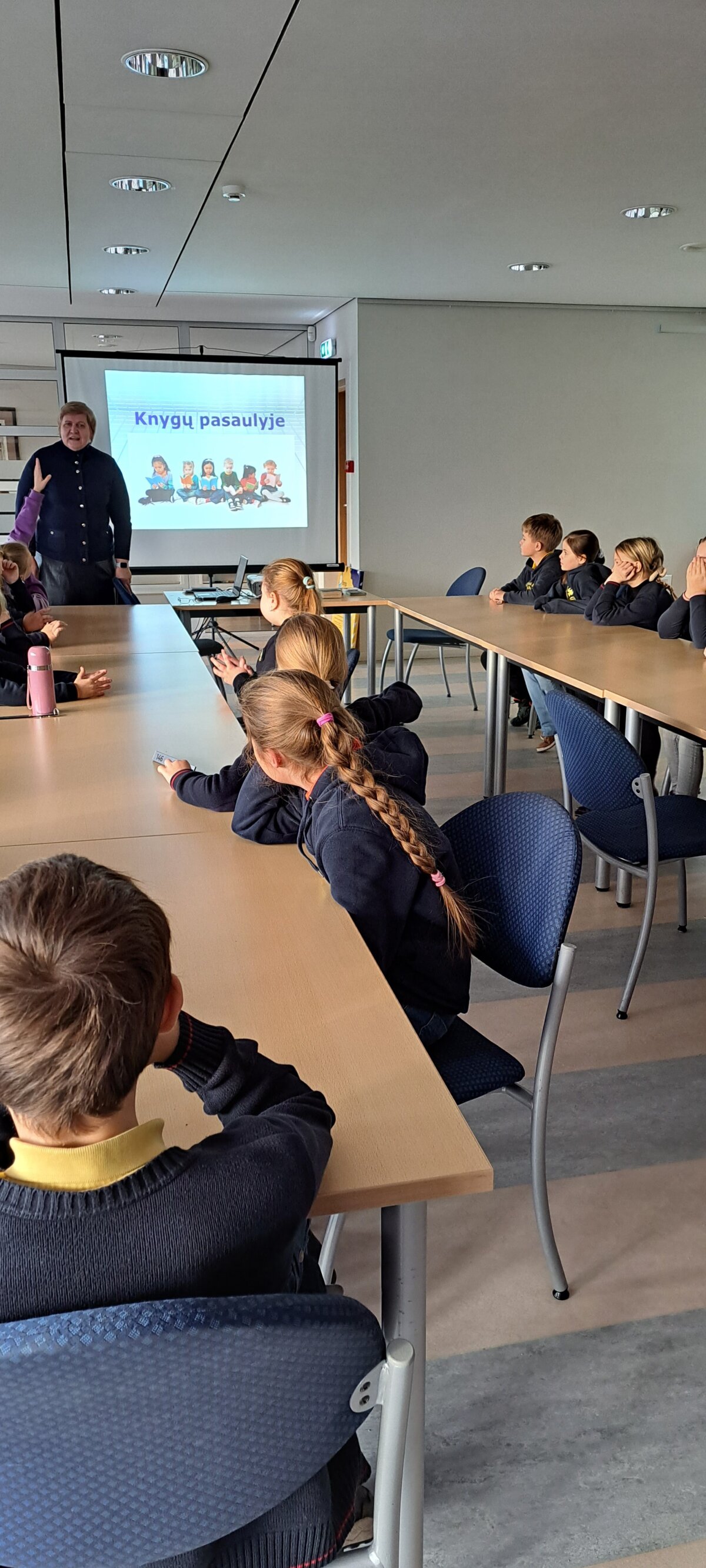 Lapkričio 29 dieną 3b klasės mokiniai vyko į Panevėžio apskrities Gabrielės Petkevičaitės – Bitės viešąją biblioteką, kur dalyvavo edukacinėje programoje „Knygų pasaulis“. Užsiėmimo metu mokiniai susipažino su rašto ir knygos istorija nuo pačių pirmųjų rašytinių tekstų ir priemonių iki šiuolaikinių knygų. Mokiniai atliko įvairias kūrybines užduotis.