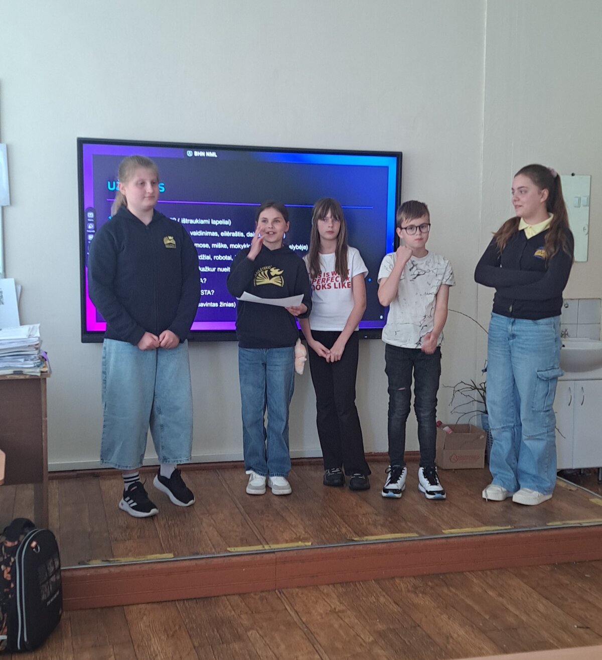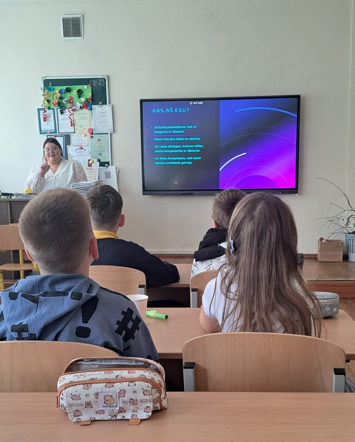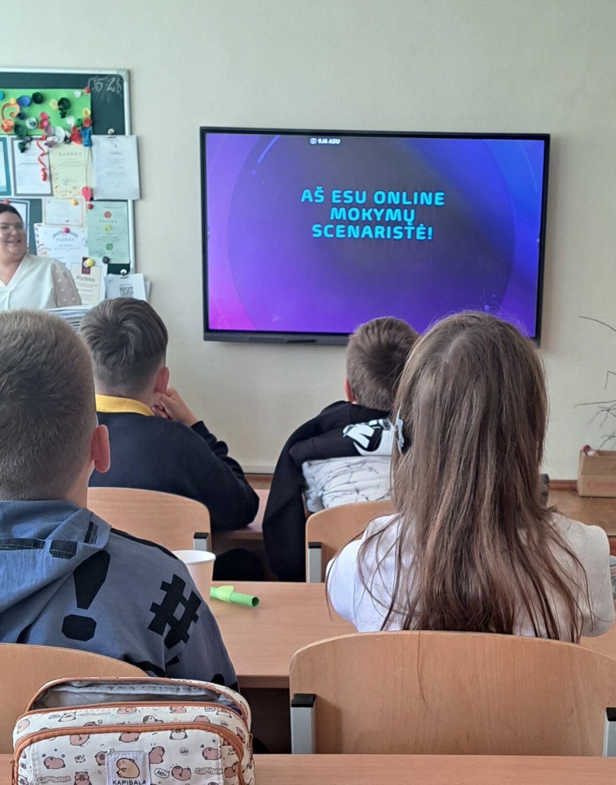 Birželio 3 dieną  4b klasė turėjo ypatingą pamoką – lankėsi Indros mama, kuri dirba online mokymų scenariste. Pamokos pradžioje vaikai smalsiai bandė atspėti, kuo gi užsiima bendraklasės mama. Sužinoję teisingą atsakymą, jie klausėsi pasakojimo apie kūrybinį ir atsakingą scenaristės darbą – nuo idėjos iki mokymo turinio sukūrimo. Pamokos pabaigoje mokiniai patys pasijuto tikrais kūrėjais – dirbdami grupėmis kūrė savo mini scenarijus. Kiekviena komanda pristatė savo darbus pasitelkdama vaizduotę, komandinį darbą ir ką tik įgytas žinias. Ačiū Indros mamai už įkvepiančią pamoką ir prasmingą laiką!