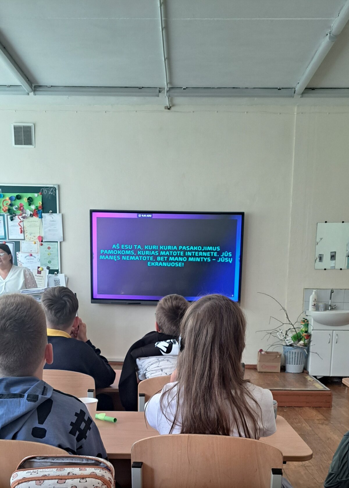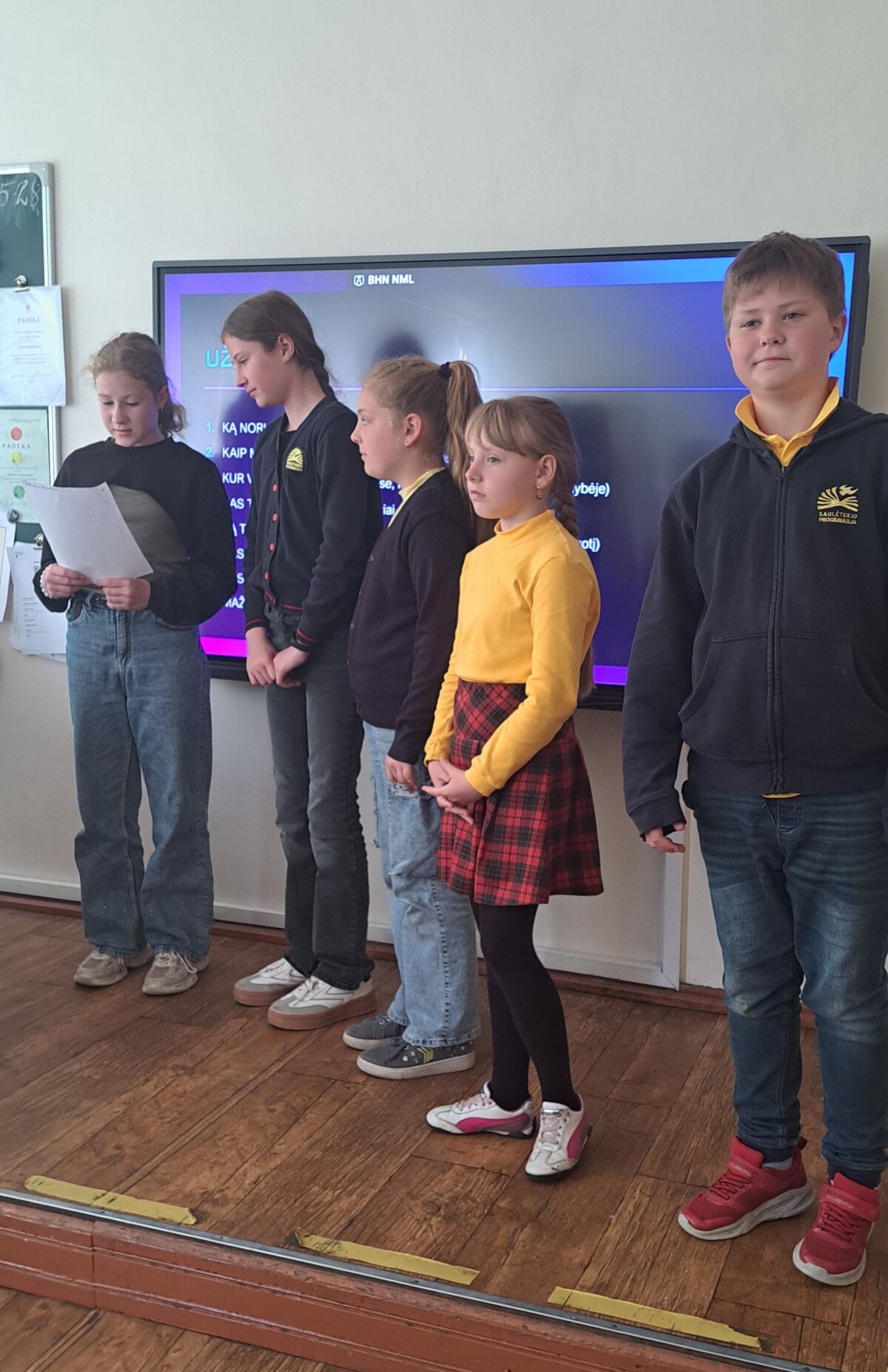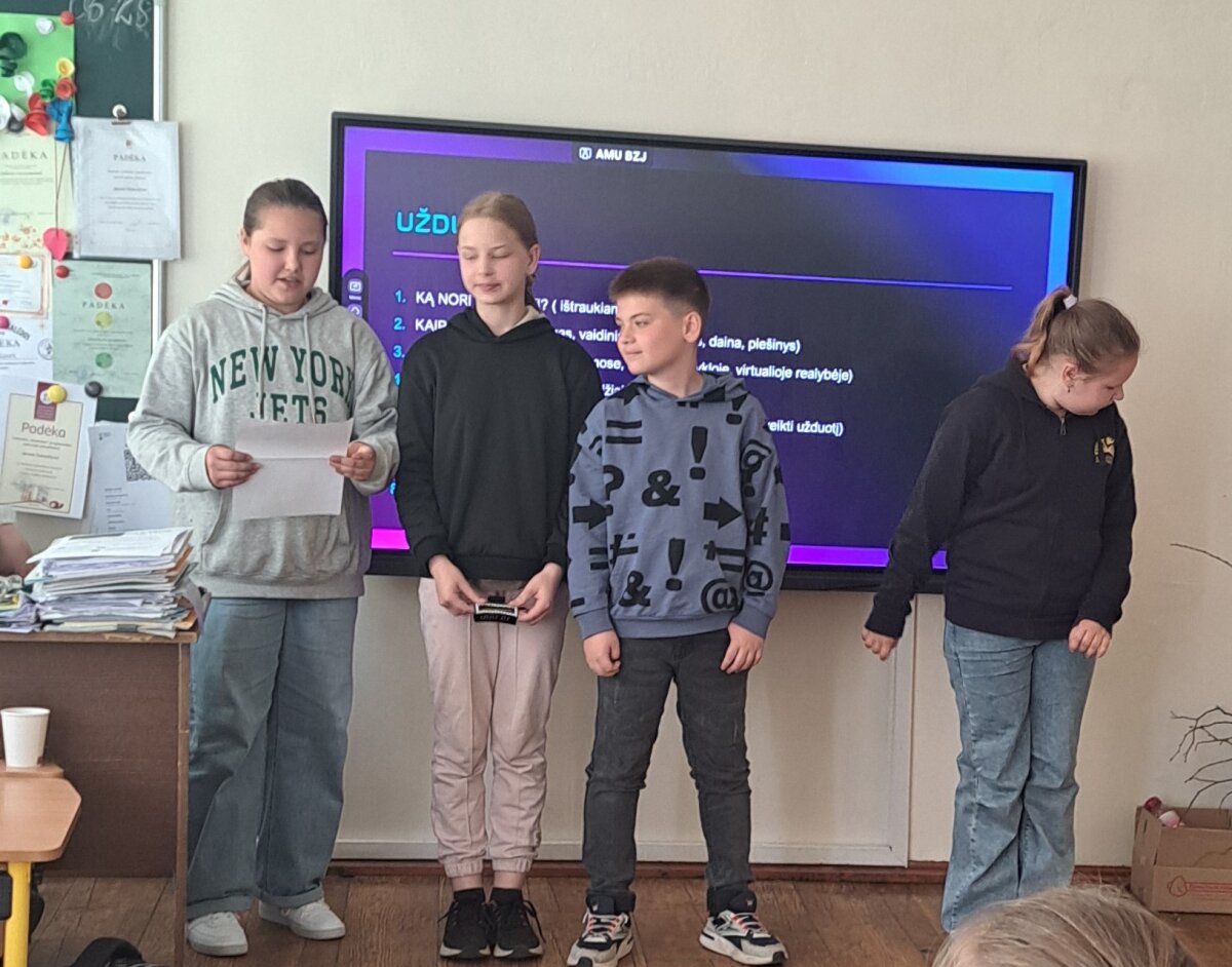 Birželio 3 dieną  4b klasė turėjo ypatingą pamoką – lankėsi Indros mama, kuri dirba online mokymų scenariste. Pamokos pradžioje vaikai smalsiai bandė atspėti, kuo gi užsiima bendraklasės mama. Sužinoję teisingą atsakymą, jie klausėsi pasakojimo apie kūrybinį ir atsakingą scenaristės darbą – nuo idėjos iki mokymo turinio sukūrimo. Pamokos pabaigoje mokiniai patys pasijuto tikrais kūrėjais – dirbdami grupėmis kūrė savo mini scenarijus. Kiekviena komanda pristatė savo darbus pasitelkdama vaizduotę, komandinį darbą ir ką tik įgytas žinias. Ačiū Indros mamai už įkvepiančią pamoką ir prasmingą laiką!