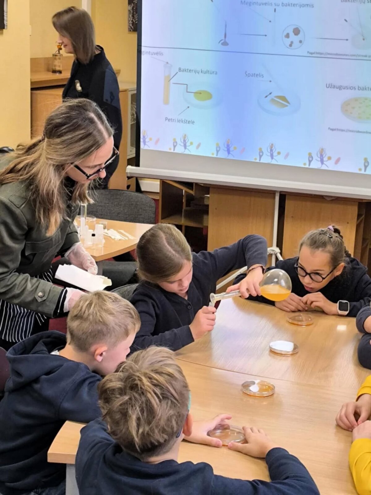4b ir 4c kl. mokiniai „Židinio“ bibliotekoje dalyvavo rašytojos Urtės Starkevič knygos „Mikropolis“ pristatyme. Tai buvo ne tik susitikimas su kūrėja, bet ir kelionė į nematomą, tačiau labai įdomų mikrobų pasaulį. Knygos autorė papasakojo, kaip gimė idėja parašyti istoriją apie bakterijų gyvenimą ir jų nuotykius žmonių pasaulyje. Mokiniai sužinojo, kad net ir mikroskopiniai padarėliai gali būti labai svarbūs mūsų sveikatai ir aplinkai. Susipažino su įvairiais laboratoriniais instrumentais. Vaikai patys galėjo pabūti mažaisiais mokslininkais: maišė tirpalus, stebėjo reakcijas ir diskutavo, ką mato. Veiklos metu mokiniai ne tik sužinojo daug naujo apie mikroorganizmus, bet ir susipažino su biologo profesija. Susitikimas su knygos „Mikropolis“ autore paliko gilų įspūdį. Vaikai sužinojo, kad mikroorganizmai gyvena visur – ore, vandenyje, dirvožemyje ir net mūsų kūne.