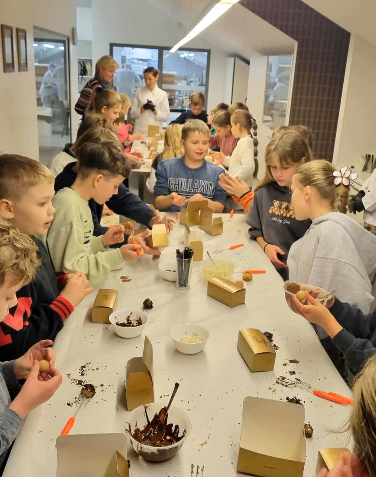 Pirmiausia vaikai lankėsi saldainių fabrike „Rūta“, kur dalyvavo saldžioje edukacijoje „Paragaukime šokolado istorijos“. Mokiniai susipažino su saldainininko profesija, sužinojo, kaip gimsta šokoladiniai skanėstai, ir patys pasigamino gardžių saldainių!