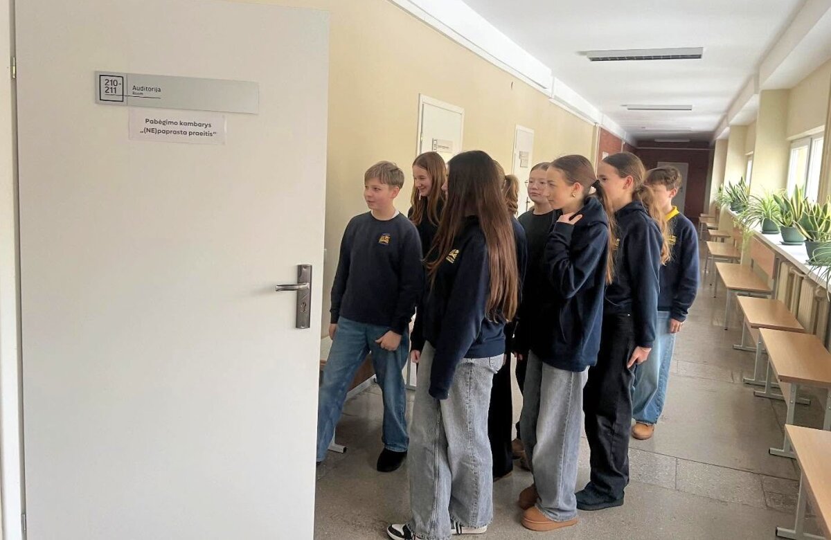 Mokyklos Jaunųjų lyderių klubo nariai lankėsi KTU Panevėžio technologijų ir verslo fakulteto Pabėgimo kambaryje „(NE)paprasta praeitis“.